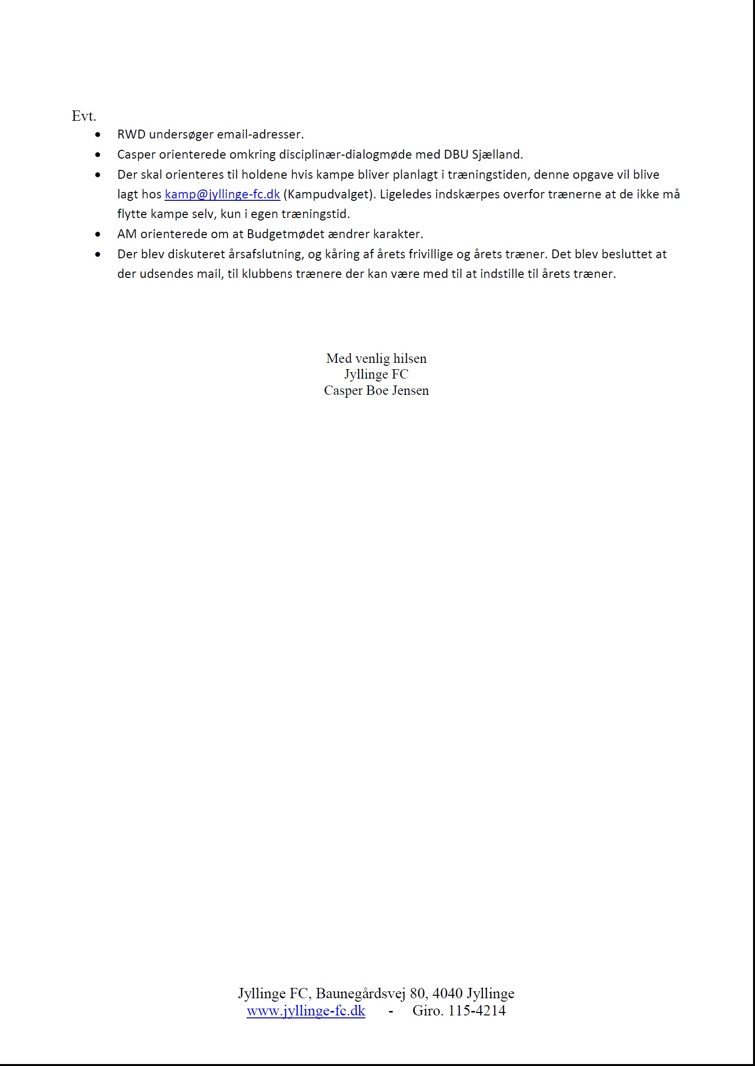 Organiseringen af Jyllinge FC