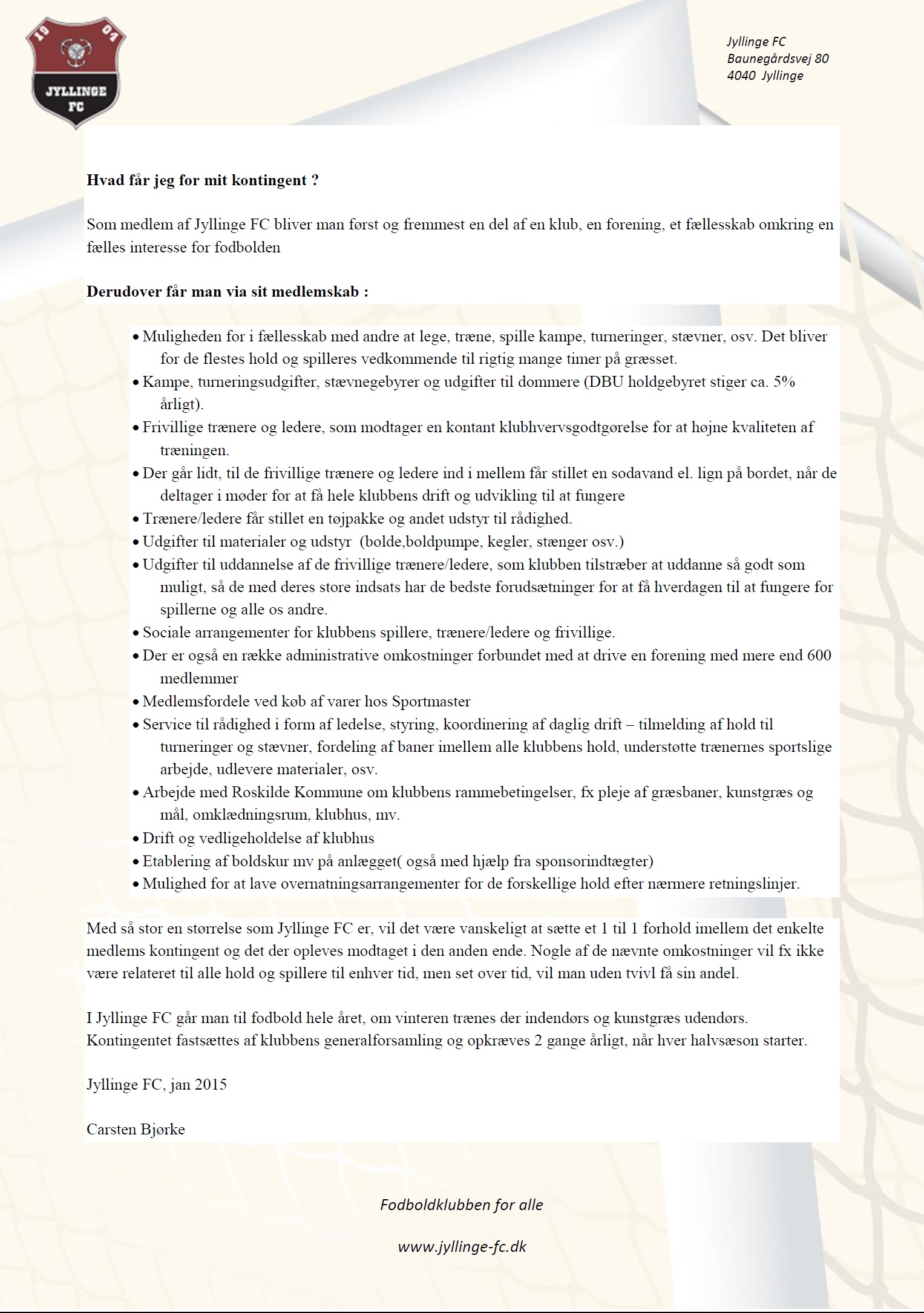 Hvorfor betaler vi kontingent i Jyllinge FC, og hvad giver det mig.